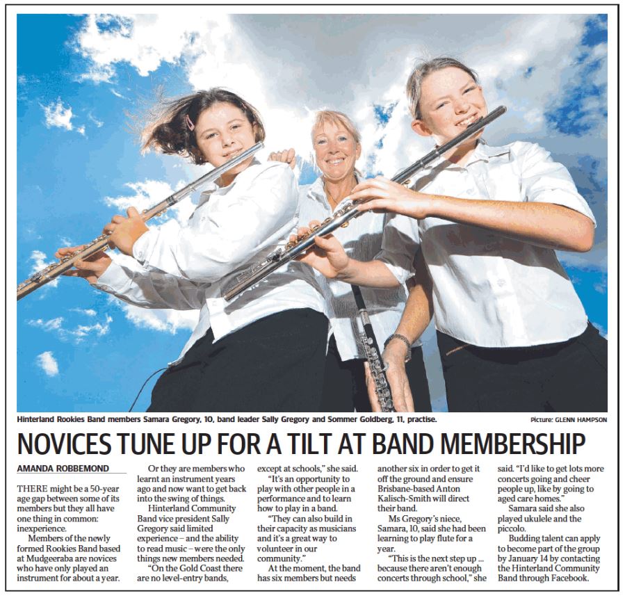 Recognising the lack of entry-level banding opportunities on the Gold Coast the HCB is excited to announce the start of a band for inexperienced players, those who have been learning for a year or so, those that played in the past or those learning a second instrument. The Rookies band launch is Nov 24 and music reading musicians of all ages are invited.