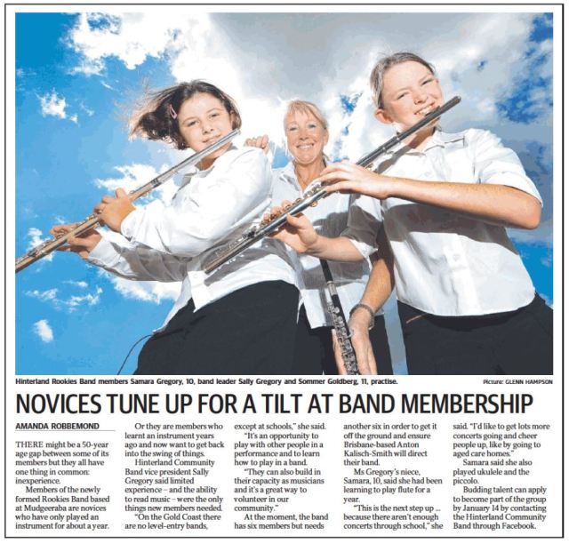 Enquiries by email to s.gregory.10@student.scu.edu.au or message us on Facebook at Hinterland Community Band.