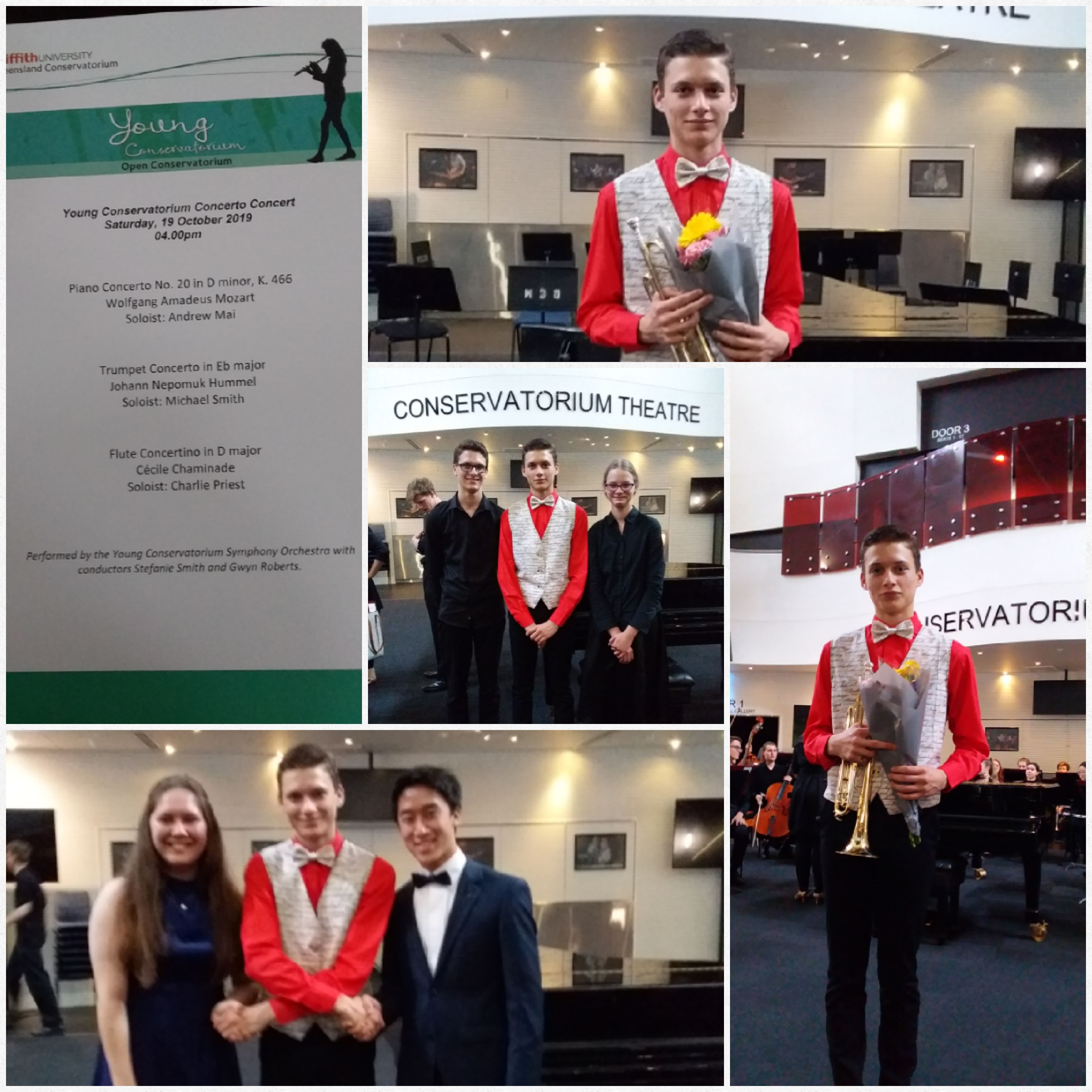 The Hinterland’s Michael Smith performed at the Young Conservatorium Concerto Concert on the 19th of October, on Brisbane’s South Bank. Michael played the Trumpet Concerto in Eb Major by Johann Hummel and by all accounts, did a fantastic job of this piece. Well done Michael!!