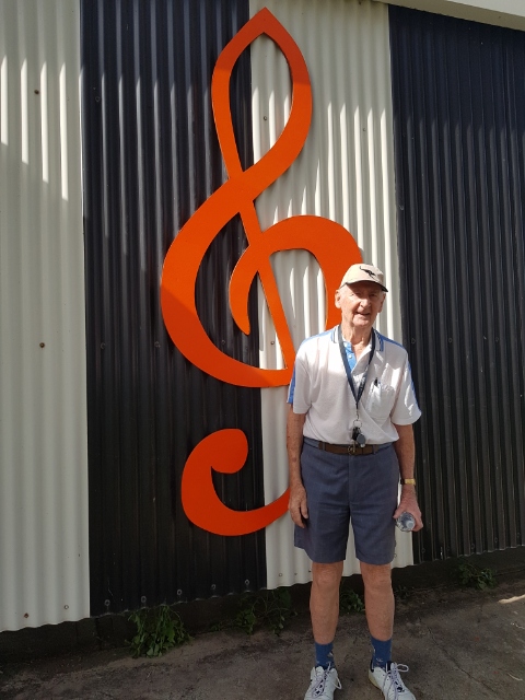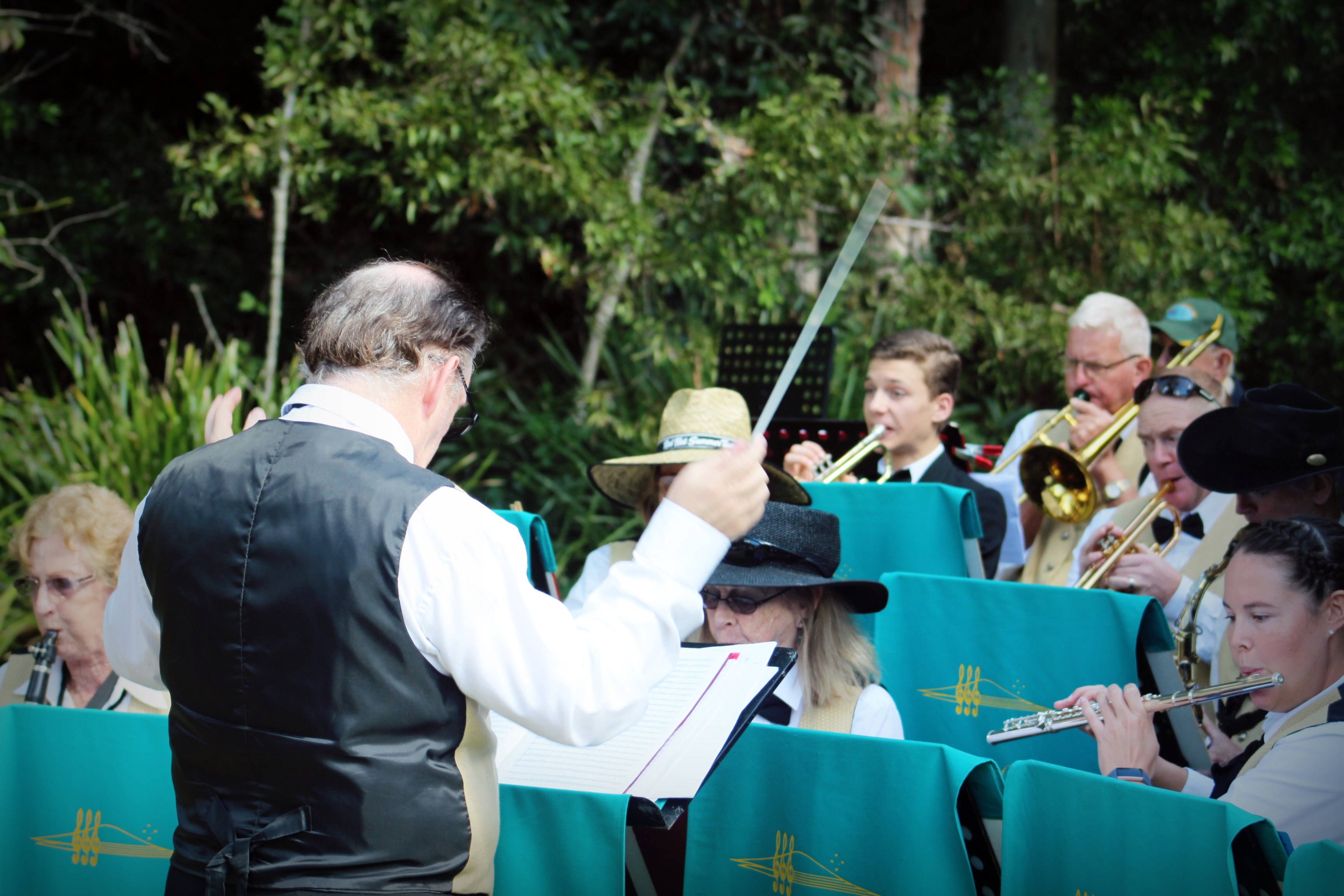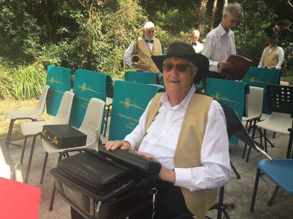 Vic Knowles leading the Hinterland Band at the 2014 ANZAC Day service in Elsie Laver Park, Mudgeeraba